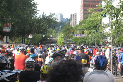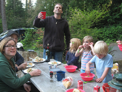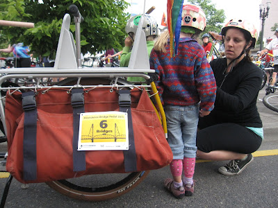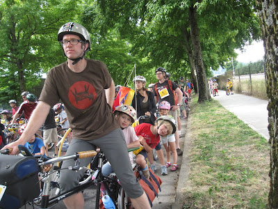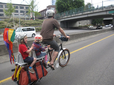 Here's a shot of the Family Ride crew on their family bike. This bike doesn't have the cargo capacity of my Big Dummy but it's more maneuverable and the kid seats will one day come off and it'll be a "normal" bike again. The Big Dummy will always be a Big Dummy.