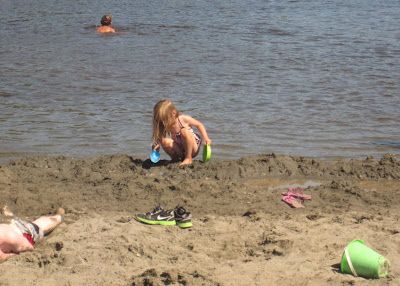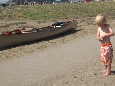 The destination/reason for our trip to West Seattle was to see the Navy ships come in for Seafair. We set up camp at Alki Beach and watched a bunch of craft go by. The biggest was this Aircraft Carrier, but the tug boats, jets, helicopters, and hovercraft were more popular with the kiddos.