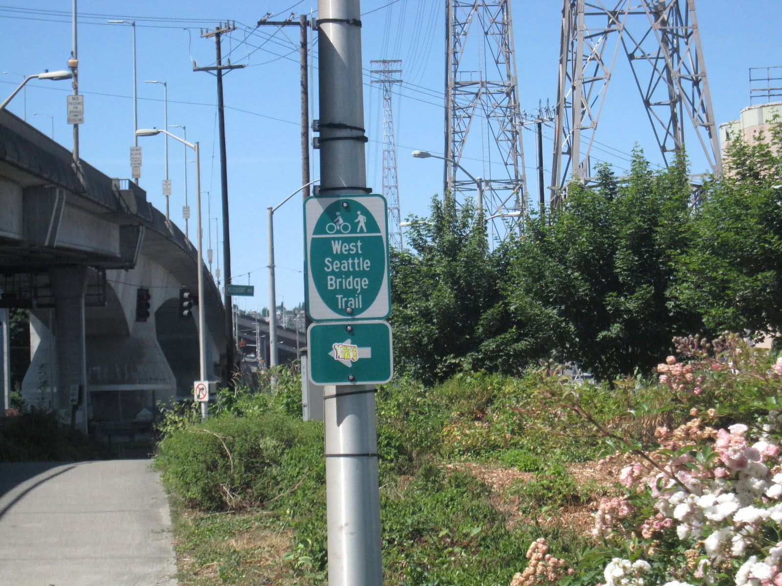 The trail from Downtown to the West Seattle bridge was imposingly industrial. Once across the West Seattle bridge the concrete and chain-link gave way to grass, trees and waterfront views.