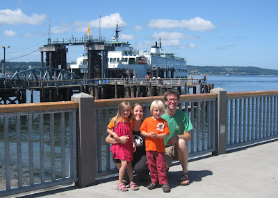 The kids didn't really want to leave the beach but the time came to pack up and start heading home. We took the water taxi back to the downtown waterfront. The view of the Seattle skyline from the taxi dock are spectacular. The kids wanted to pose in front of their favorite Seattle landmark... "The Wheedle on the Needle". If you don't know the reference, look it up and check it out from the library.